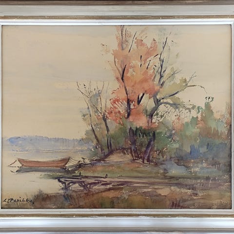 Lauri Parikan akvarellityö, koko kehyksineen 45x37 cm.