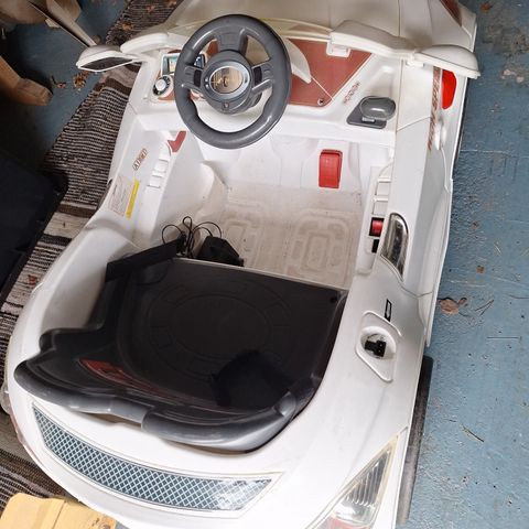 Lasten sähköauto, toimiva, pari vuotta vanha, käytön jälkeä löytyy. Jäänyt pieneksi nykyiselle bemmikuskille.