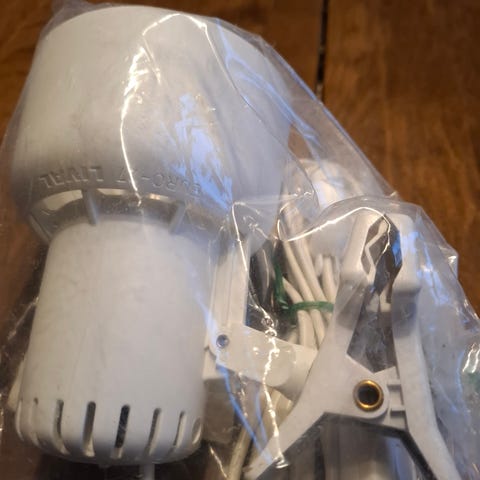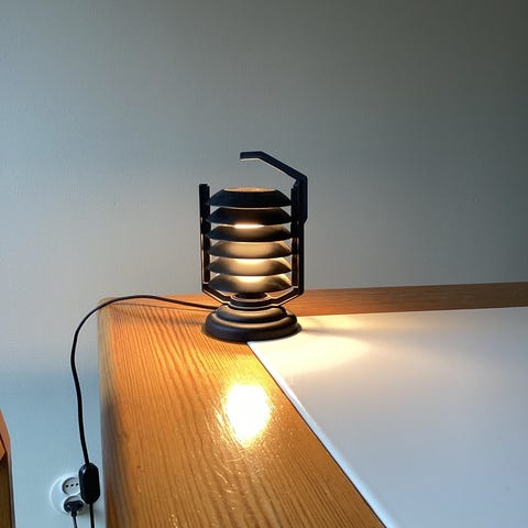 Musta eri suuntiin kääntyvä valaisin, Lival. Kiinnitetään siipimutterilla pöytään. Mukana muuntaja. Johto n. 1,5 m.