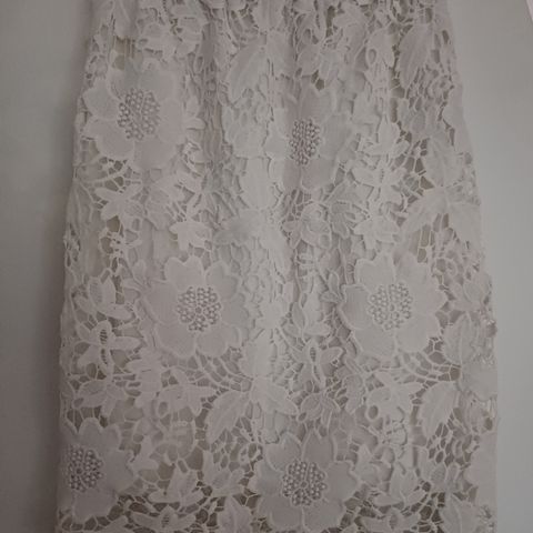 Super nätti musta pitsimekko! Takana vetoketju. Napakkaa kangasta, vastaa kokoaan, kangas ei jousta. Ei näy läpi.