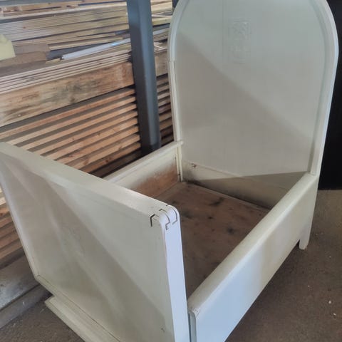 Lasten vanha puinen sänky. Maalipinta hyvässä kunnossa. Leveys n. 80cm ja pituus pisimmillään n. 190cm