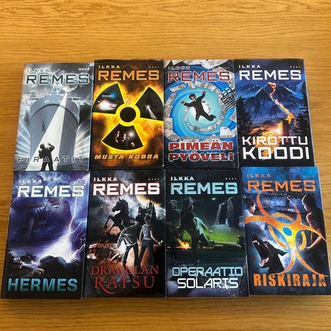 Myydään Mauri Kunnas Hui kauhistus! kirja sekä kolme Vampyyrisiskokset kirjaa; Virtuaalinen verisukulainen, Toiveita pitkin hampain ja Kutistuvat kulmahampaat. Kaikki yhteensä 10e
