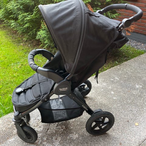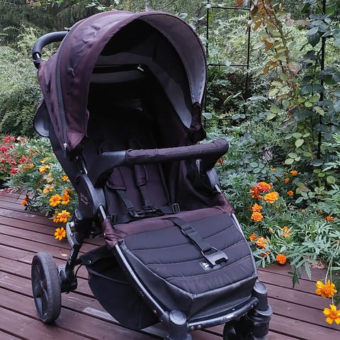 Mukana vaihdettavat maastorenkaat sekä sadesuoja.