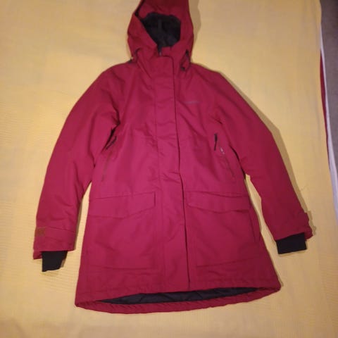 Vaalea beige sävy. Kunto hyvä ja laadukas. Pienet tahrat oikeassa hihassa, lähtevät paikallisesti puhdistettuna. Lämmin toppatakki. Kaunis muotoilu.