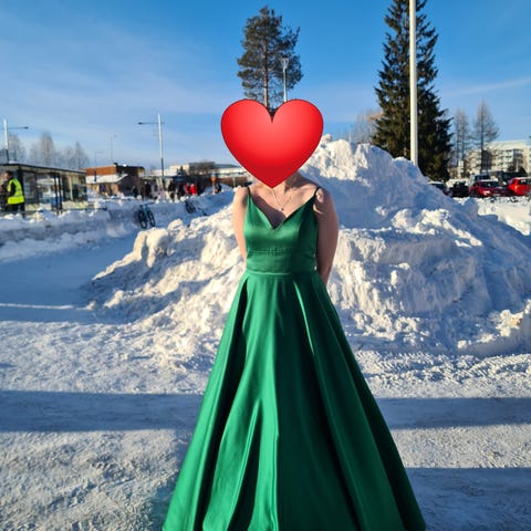 Iltapuku/vanhojentanssimekko. Koko 36. Tanssijan pituus n. 167cm. Mekon pituus laahuksesta niskaan n. 150cm. Ihania yksityiskohtia. Saa käydä sovittamassa Rovaniemellä.