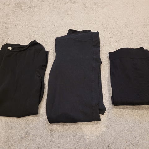 Kahdet äitiyssukkahousut. Toiset käyttämättömät, toisia käytetty vain muutamasti.