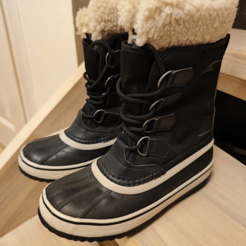 Myydään käytetyt Sorel-talvikengät. Vedenpitävä mokkanahka, lämmin eristys ja pehmeä EVA-pohjallinen. Pohjassa on pitävä kumipohja. Kengissä on tekoturkisreunus ja fleecevuori.