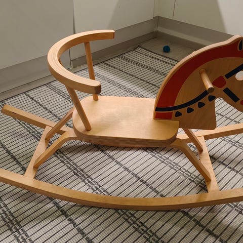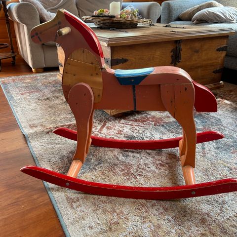 Puinen keinuheppa. Elämisen jälkiä näkyy, mutta yleisilme siisti.