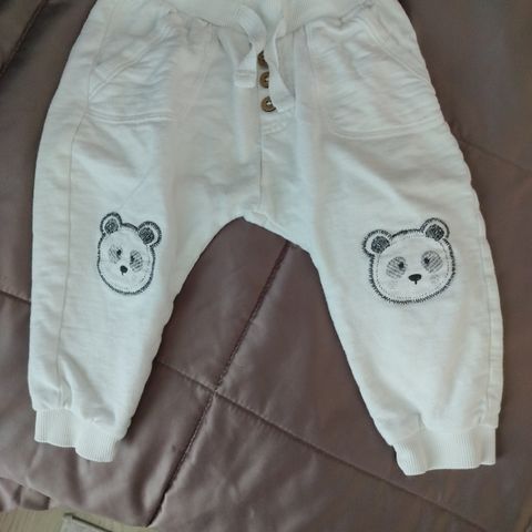 Newbien ns. paremmat housut koko 80. Flanellihousujen tyyliset. Hieman nukantapaista, kun kangas on laadultaan pehmeää. Muuten hyvässä kunnossa.