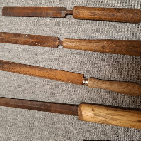 Erikokoisia vanhoja viiloja. Suurin osa Viialan viila oy:n tekosia.