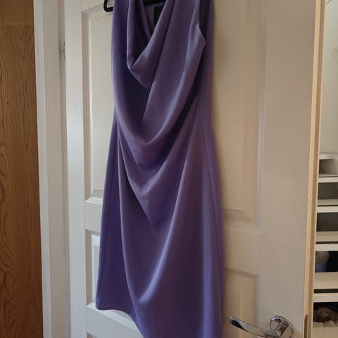 Katri Niskasen pitkähihainen mekko. Mekko on pituudeltaan noin polvimittainen. Hihoissa yksityiskohtana röyhelöt, niskassa nepparikiinnitys. Koko S.