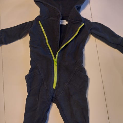 Tämä unihaalarina käytetty Gugguun vaate on tiivistä ja lämmintä kangasta, jossa on puuvillan lisäksi 5% elastaania. Vaate on sisältä pehmoiseksi harjattua nukkaa. Sivulle nouseva vetoketju ei painu ylös vedettynä vauvan leuan alle ja vaatteen sisään ommeltu kangaskaitale varmistaa sen, ettei vetoketju paina ihoa vasten mistään kohtaa. Tämä yllä on nukuttu makeita unosia.