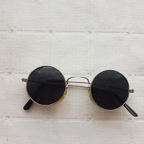 Pyöreät vintage silmälasikehykset (hopean väriset) 70-luvulta. Halkaisija 4,8 cm. Hyväkuntoiset ja siistit.