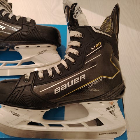 Yhdellä käytössä olleet Supremet, ehjät kantapäistä sisältä. Kolmet terät joissa kaikissa terää ihan reilusti. Teräsuojat mukaan.