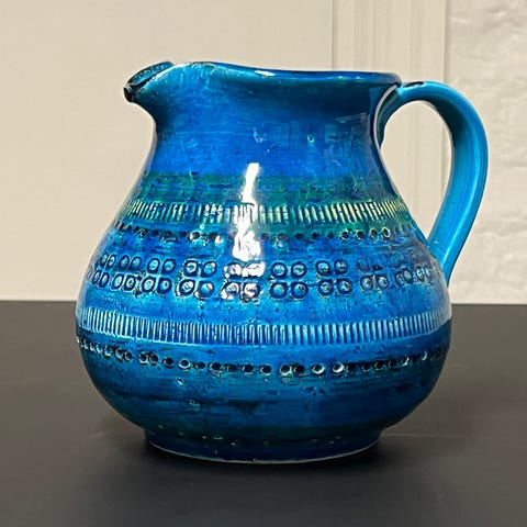 Kaunis Art Nouveau kannu, kolme painaumaa kyljessä.”Vasaroitu” pinta.