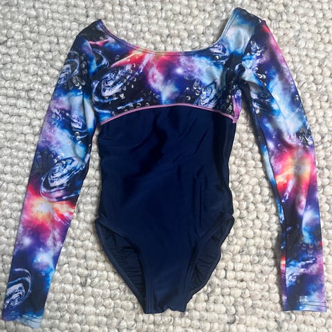 Uudenveroinen voimistelupuku, ei ehtinyt meillä käyttöön kun laji vaihtui.