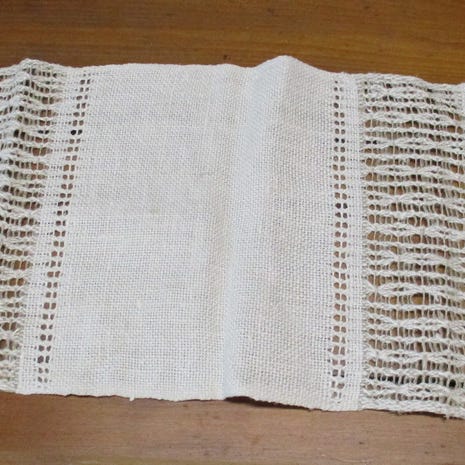 Luonnonvaalea pellavaliina revinnäiskoristelulla.