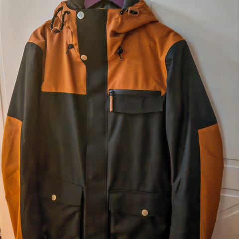 Käytetty vain pari kertaa lasketellessa. Kuvissa näkyy, että lahkeissa vähän käytönjälkiä. Minusta housut ovat ehjät. Konjakin väriset.