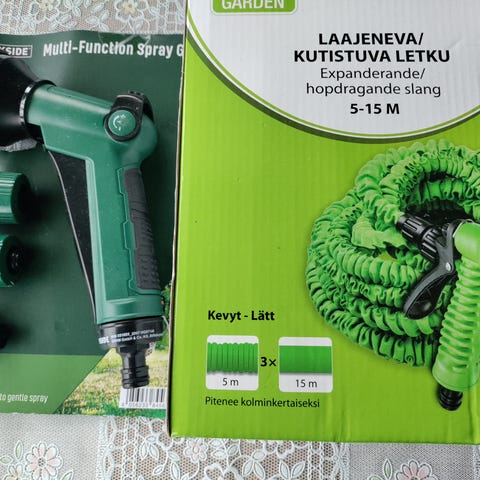 Gardena Y-haara kasteluliitin ja useita letkuliittimiä, valmistettu kestävästä muovista, väriltään vihreä ja musta. Soveltuu puutarhan kastelujärjestelmiin, mahdollistaa kahden letkun liittämisen yhteen. Liittimissä on kierreliitännät ja ne on suunniteltu yhteensopiviksi Gardena-letkujen kanssa.