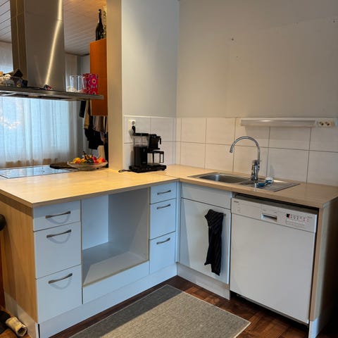 2 keittiön kaappia ja työpöytätaso