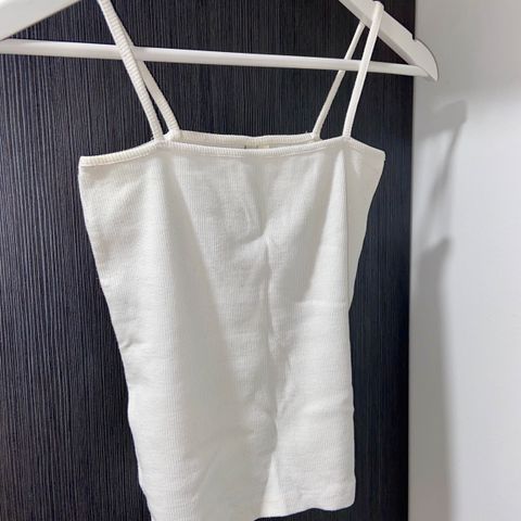Myydään naisten valkoinen siisti toppi. Toppi on pituudeltaan noin napaan asti. Topista on leikattu laput pois mutta ei ole kertaakaan käytetty.