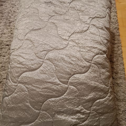 Myydään valkoinen, ihanan kevyt ja kaunis päiväpeitto. Tarkkaa kokoa ei tiedossa, mutta menee yli reippaasti lattialle asti parisängystä (160)Hp 40e