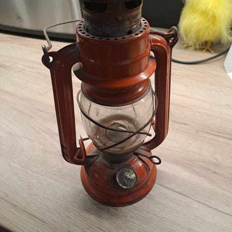 Nyt ollut vain koristeena, koska käyttäjälleen ei ollut vuosikymmeniin valonlähteenä mökillä tarvetta.
