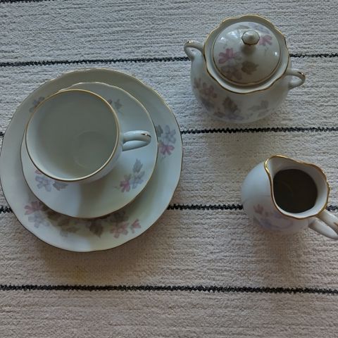 Arabia kakkoslaadun leimalla leimattu sävy fajanssi kuuden kupin kahviastiasto,