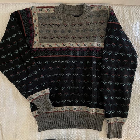 Isoäidin kuusikulmiosta tehty neule. 100% akryyliä. Olka-helma 56cm