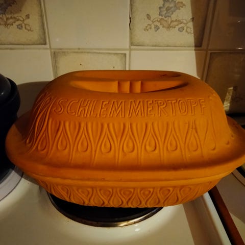 Vaalea keraaminen uunipata. Ei tietoa merkistä. Ehkä Pentikin. Kannessa pieni rikko ja samoin padan sisäreunassa (katso kuvat). Padan korkeus ilman kantta noin 10 cm ja sisäleveys noin 15 cm. Korkeus kannen kanssa noin 15 cm.