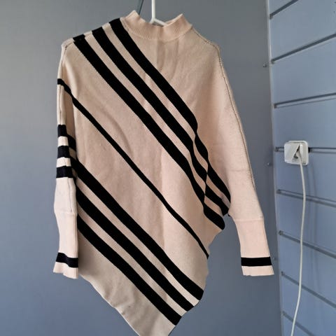 Myydään käyttämätön, näyttävä M-koon poncho, joka on 50 % villaa, 25 % polyakryylia, 20 % polyesteria ja 5 % muita kuituja. Ponchon pituus on noin 70 cm. Nouto Kuopiosta tai postitus, jolloin lähetyskuluista vastaa ostaja. Hinta 8 €.