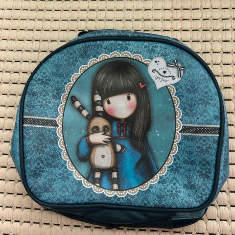 Entinen omistaja päätti että tyttö kuvassa kaipaa hymyä.... Muuten laukku ei ollut oikeastaan käytössä.