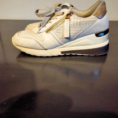 Myydään trendikkäät lenkkarit. Harmaa ja valkoinen yhdistyvät raikkaalla tavalla, ja lenkkarit näyttävät jalassa modernilta ja tyylikkäältä. Ne tuntuvat kevyiltä, mutta antavat silti hyvän tuen, joten niillä on mukava liikkua niin kaupungilla kuin vapaa-ajallakin. Lenkkarit ovat hyvässä kunnossa vain muutaman kerran käytetty.