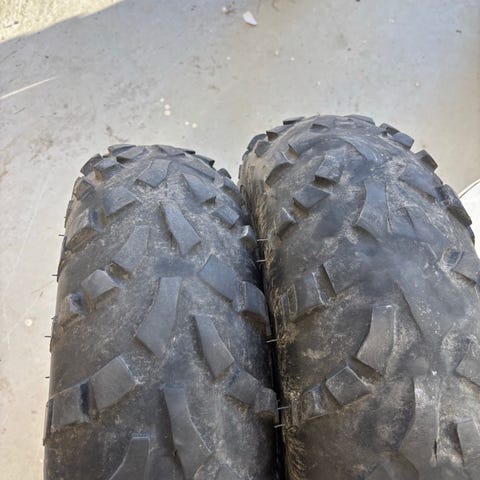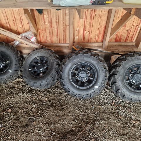Myydään kuvassa näkyvä Polaris Sportsman 500 ensiasennus rengassarja peltivanteilla. Renkaat alkaa olla ehtoopuolella - yli puolet pinnasta kulunut. Toinen takarengas vuotaa muistaakseni jostain venttiilin vierestä? Vanteetkin saaneet metsässä osumia eli eivät priimat.