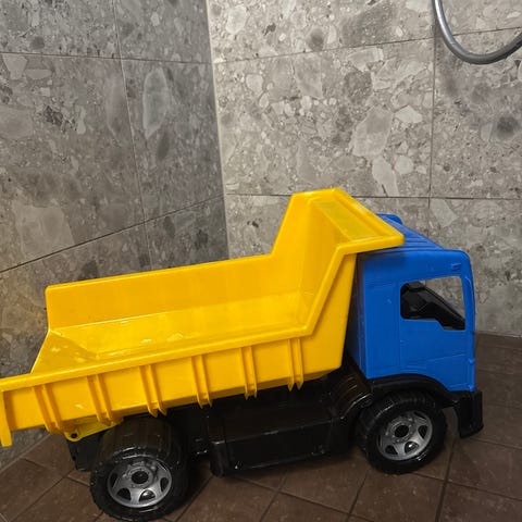Lasten leikkikuorma-auto, värit sininen ja punainen, valmistettu muovista. Todella iso! https://www.karkkainen.com/verkkokauppa/suuri-83-cm-kuorma-auto-hiekkalelu?id=103315958&gad_source=1&gad_campaignid=22946477240&gclid=Cj0KCQjw8eTFBhCXARIsAIkiuOwk7n-d5FYPlIxpnvYcqrFQf5YyqcXNkmPgnkWOL65_4UHAHISyjmkaAgXvEALw_wcB