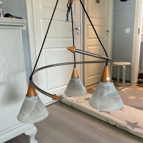 Myydään hyvässä kunnossa oleva novaluxin kattovalaisin. Otettu katosta alas toimivana, joten pitäisi toimia edelleen. Lasikuvut ovat ehjät. Ketjua voi pidentää. Ylimääräinen ketju kuuluu kauppaan. Lasikuvun halkaisija 31cm ja lampun leveys kokonaisuudessa on 70cm.