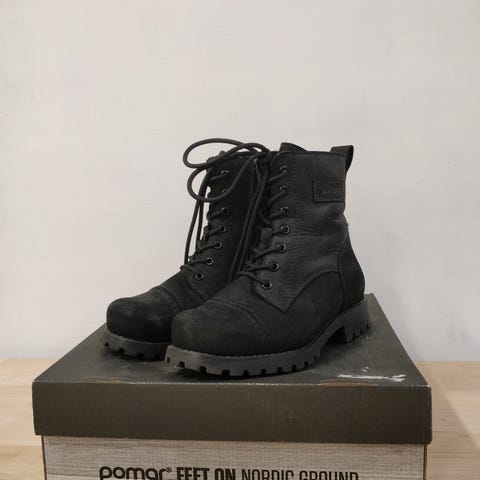 Kuvan laadukkaat, lämpimät, lyhytvartiset Pomar Goretex talvikengät, väri musta, koko 36, uusi, laput kiinni. Pohjallisen kokonaispituus noin 22.5 cm, pohjallinen ei ole irrotettava. Vetoketju kengän sisäsivulla, mitta kengän yläosa - pohja noin 16 cm. Kuivat ja lämpimät jalat märissä ja kylmissä olosuhteissa. Korkealaatuinen, hengittävä ulkokerros, mokkanahkaa, Pomar Grip pitopohja pitää liukkaalla kelillä, eikä jäykisty. Pomar mokkanahalla kahden tunnin vedenkesto. Lämmin villavuori pitää jalan lämpimänä. Laadukkaat kengät syksyyn ja talveen. Meillä on tätä kenkää ollut käytössä useita kokoja, ja on tykätty, laadukas kenkä. Nouto tai postitus.