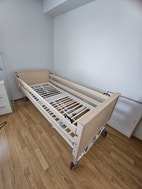 Laadukas säädettävä hoitosänky. Taittuva runko, mahtuu pieneen tilaan. Säädettävät puulaidat, patja ja petauspatja sisältyvät hintaan, suomalainen tuote.