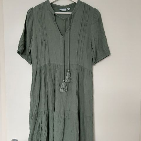 Vila mekko musta-beigellä kuviolla, koko 40. Mekossa on pitkät hihat ja napitettava etuosa. Materiaal: 100% viskoosi.