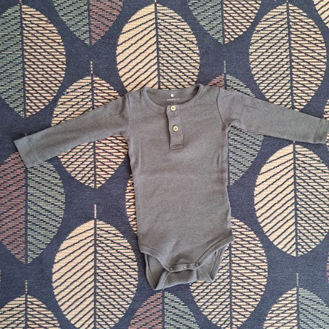Name it ribbi-tyylinen body koossa 74. Täysin ehjä, hiukan ohutta kangasta ja hyvä käytetty kunto.