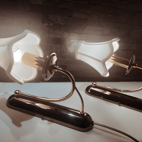 Siistit seinälampetit makuuhuoneeseen lasivarjostimilla myydään parina, molemmissa verkkovirtapistoke ja katkaisin.