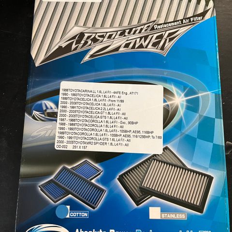 Vapaavirtaussuodatin soveltuu auton omaan ilmansuodatin koteloon.