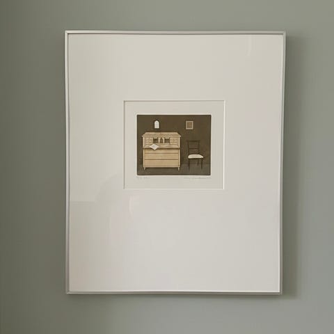 Taitelija E. Luukasen kaupunkimaisemaa esittävä taidegrafiikka. Teos on kehystetty ja siinä on näkyvissä signaatti ja numerointi. Kuvassa näkyy kaupunkikuva, jossa on kirkko ja rakennuksia.