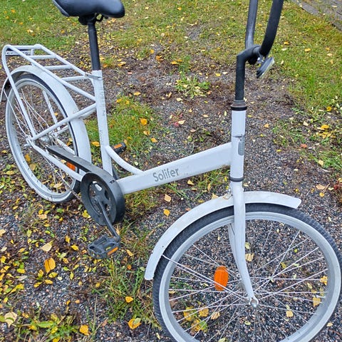 24 tuumainen polkupyörä. Likainen ja pölyinen mutta viikon verran renkaat on ilmaa pitäneet sisällään.