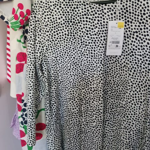 Mustavalkoinen Pirput Parput -mekko on uutta vastaavassa kunnossa. Käytetty kerran.