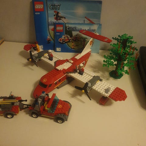 Legotalo vuodelta 1978. Melkein kaikki osat. Yksi kattopala korvattu punaisella kuvissa, mutta oikea pala löytyi kuvauksen jälkeen. Ukkelin kädet puuttuu ja housut on löysät. Katonrajasta puuttuva punainen sarana-osa löytyi myös kuvauksen jälkeen. Ei ohjekirjaa eikä laatikkoa.