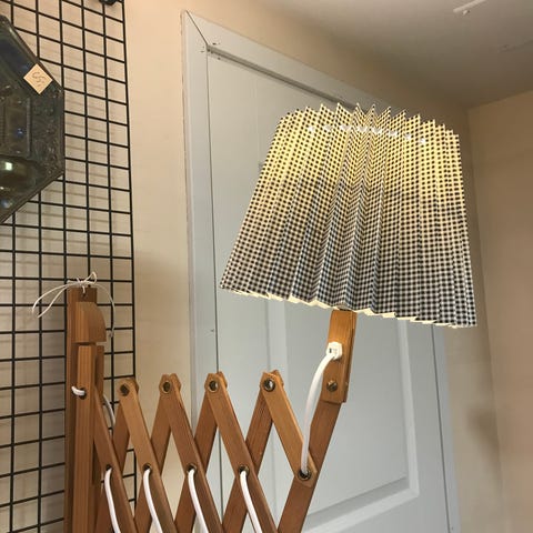 Arvioin valaisimen olevan 60-70-luvulta. Kunto hyvä. Varsi on puuta. Lampun kanta on tavallinen E27. ",Kaunis ja kätevä valaisin, vartta voi pidentää vetämällä. Varjostimen asentoa voi muuttaa, ja näin suunnata valoa.