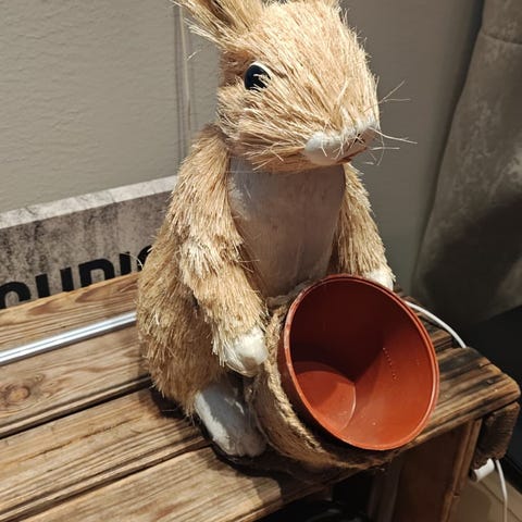 Pirteä, kolmiosaisesti kasattava muovinen pääsiäispupu.