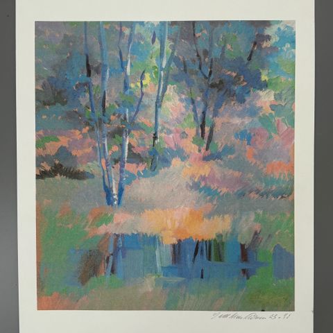 Kaj Stenvallin printti nimeltä "Iinesankka" vuodelta 1985. Työn korkeus on 35 cm ja leveys 50 cm. Kehys 54 X 73 cm.