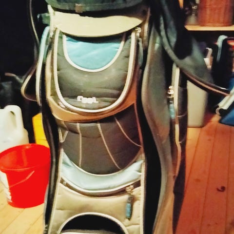 Myydään käytettynä siistikuntoinen Proline kantogolfbägi, johon kuuluu neppareilla kiinnitettävä sadehuppu ja kantohenkselit, sekä 10 kpl Pinseeker golfmailoja.